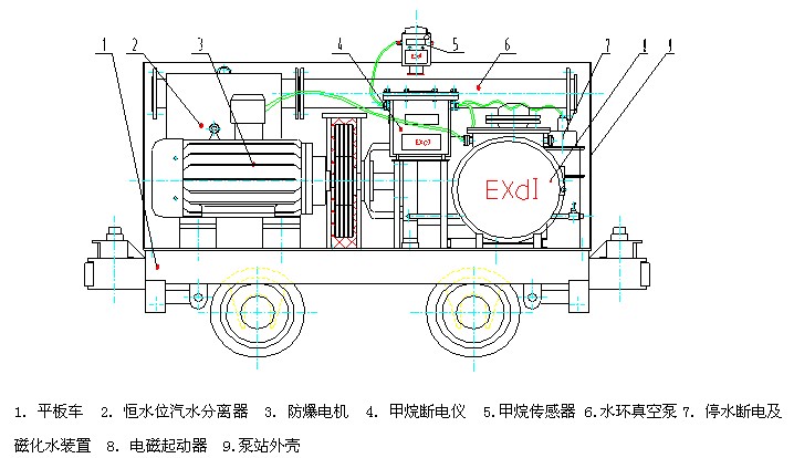 礦用移動式瓦斯抽放泵站的所有設(shè)施全部安裝在一個(gè)平板礦車上,不需要重新解體裝配,但在使用時(shí)需要注意以下幾點(diǎn):