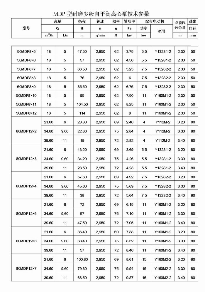 MD(P)平衡型煤礦用耐磨多級離心泵是我公司在引進(jìn)、消化、吸收先進(jìn)技術(shù)基礎(chǔ)上研制開發(fā)成功的,該產(chǎn)品不僅效率高、汽蝕性能好、關(guān)鍵是運(yùn)行平穩(wěn)可靠。適用于煤碳,礦山、工廠及其它場合輸送固體顆粒含量不大于1.5%(粒徑小于0.5mm)、溫度不大于40℃的中性礦井水和其它類似的污水。