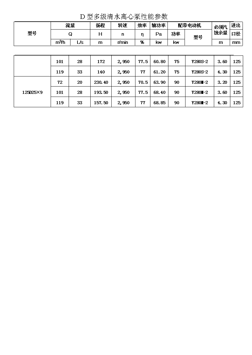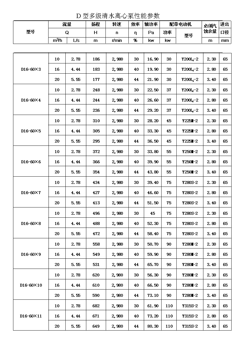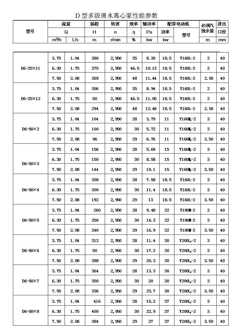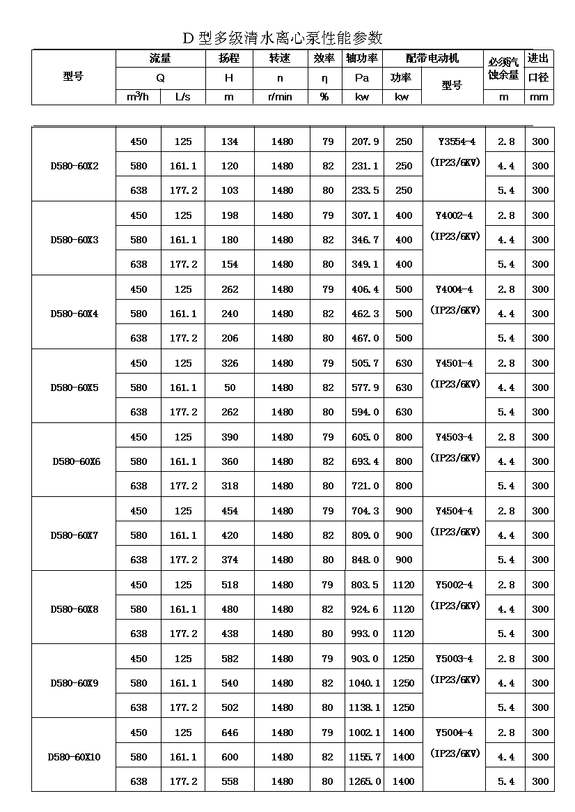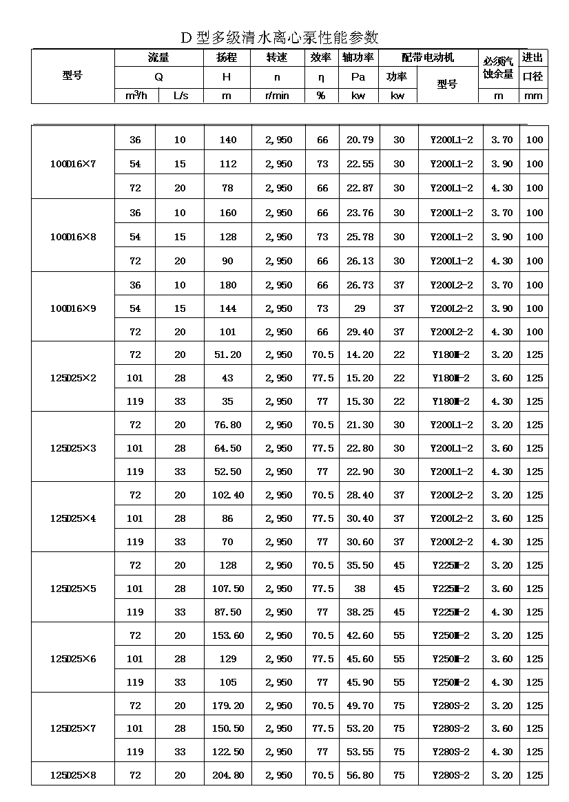 D——表示單吸、多級、節(jié)段式離心清水泵。
