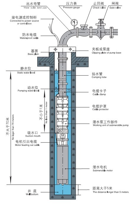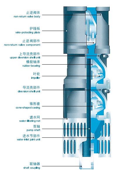 1、電機(jī)、水泵一體,潛入水中運(yùn)行,安全可靠。